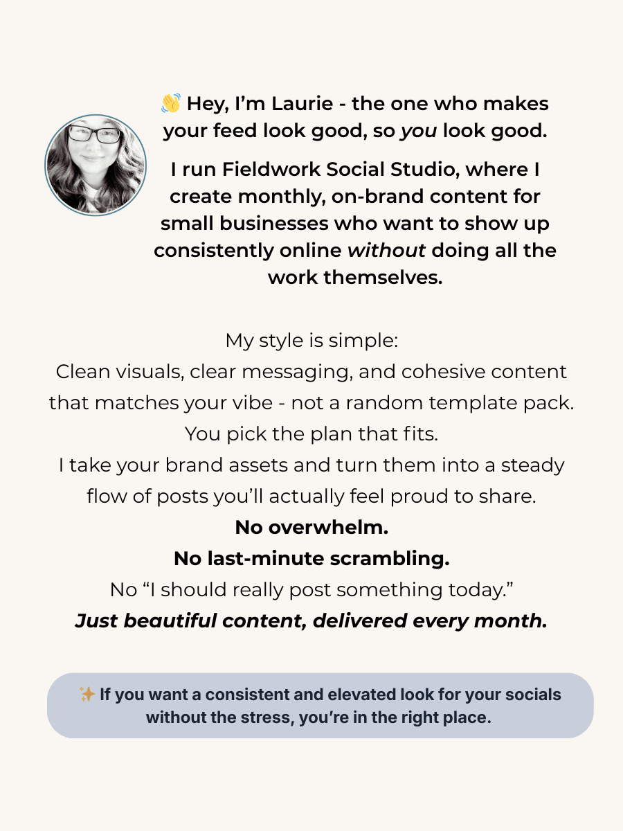 | The Pinterest Package | Your brand, discoverable everywhere. Beautifully branded pins created and scheduled for you - so your content works quietly in the background. A simple, high-impact Pinterest presence that helps people find your business without extra effort. | Starting $197/month |
